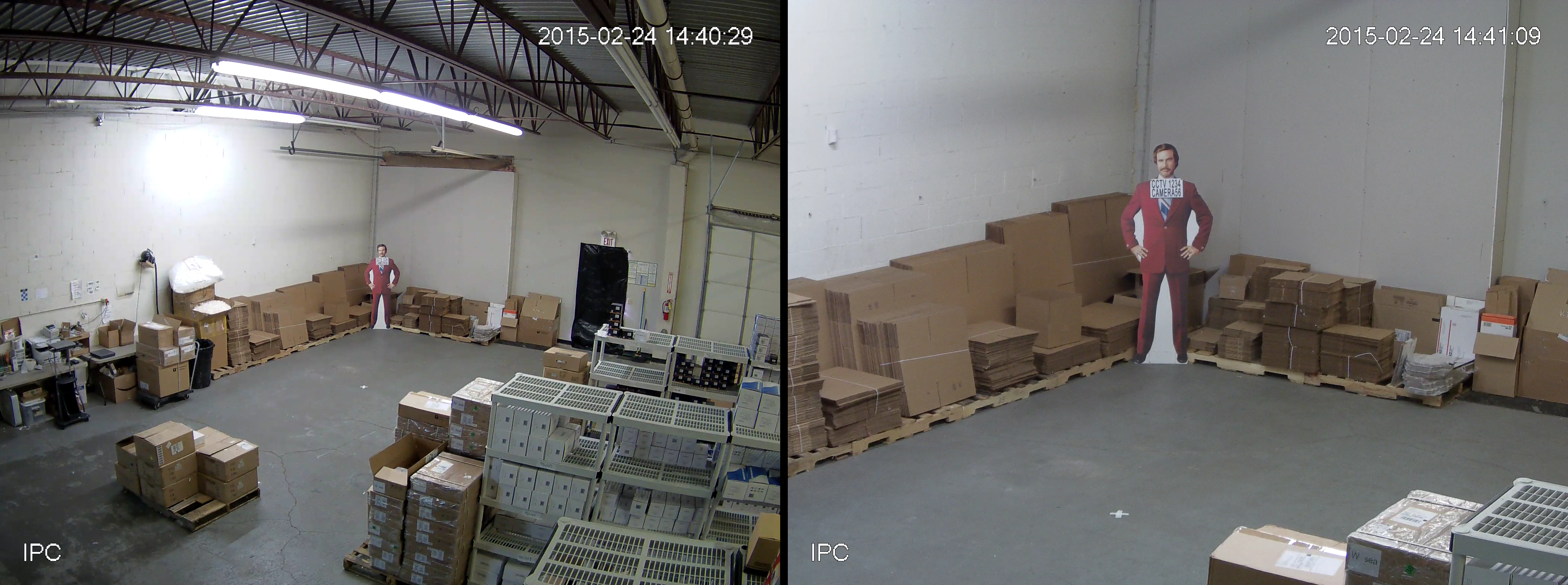 We were very happy with the image quality from the Dahua 2300R-Z when placed in a well lit indoor environment. For the sake of being able to demonstrate motorized zoom, we couldn't take full advantage of the large vertical field of view, but you can very easily see how large of an area a camera like this can potentially cover. As it has been in the past, our cutout is positioned approximately 50 feet from the cameras mounting surface and the camera is mounted at 15 feet.
