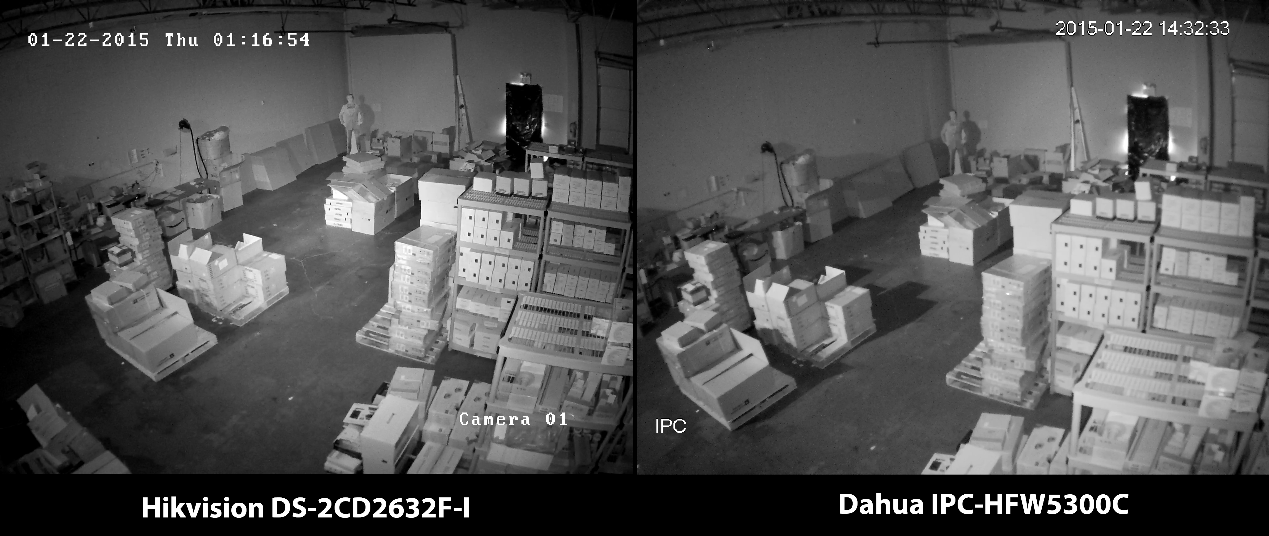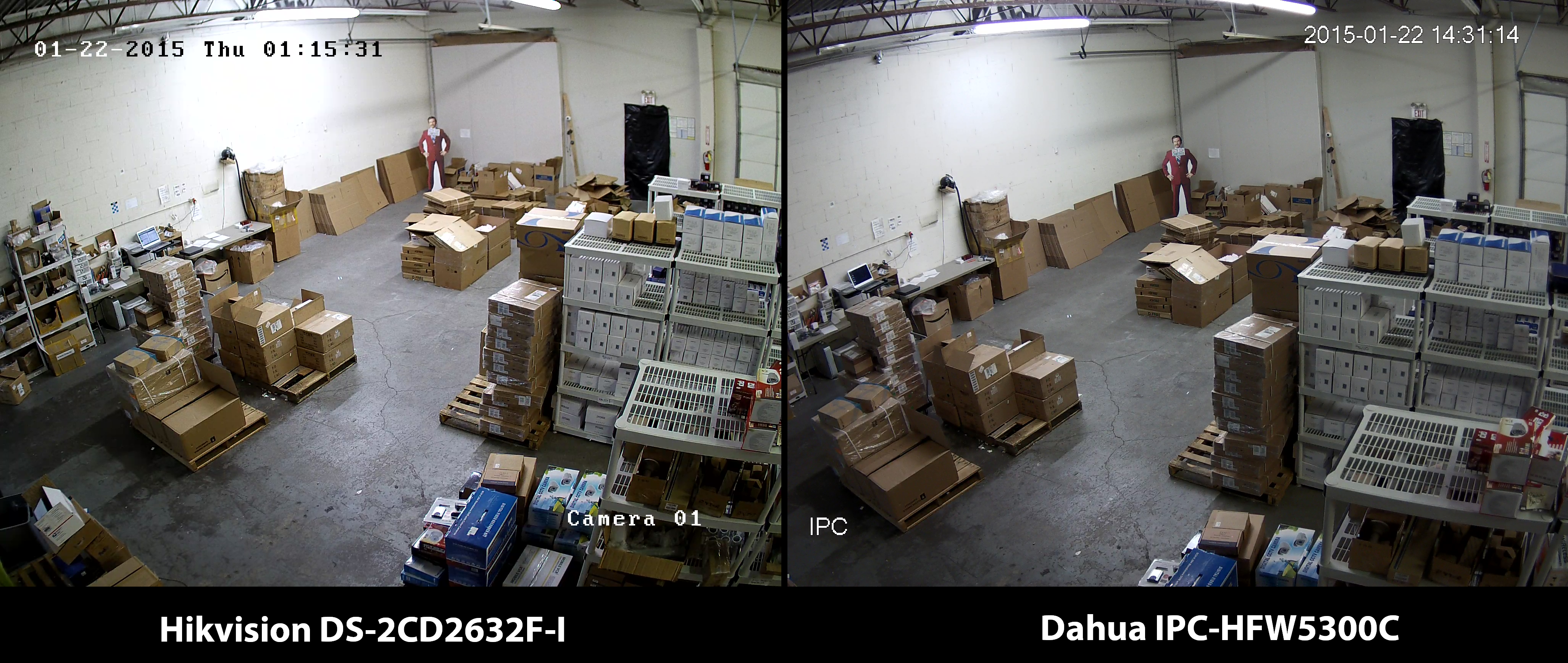 In our previous review of the Hikvision DS-2CD2032-I and the Dahua IPC-HFW4300S, we first took a look at some indoor shots at about 20 feet using the digital zoom feature. The purpose was to show what kind of finer detail you could expect from both IP cameras. Since it's completely unrealistic to place the Hikvision 2632 or the Dahua 5300C in an environment such as that, we going to start with some warehouse shots instead.