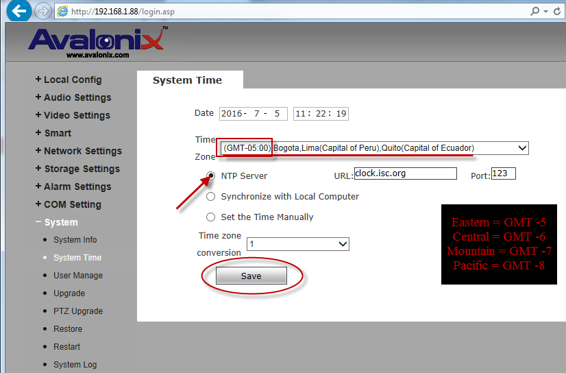 All of our IP cameras keep time. We suggest synchronizing the camera with an NTP server so you don't have to worry about the internal clock going out of sync. Having the time out of sync can cause playback issues in multi-camera systems. Here's how to set the correct time: