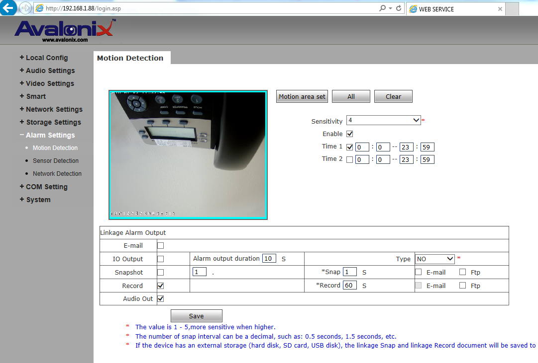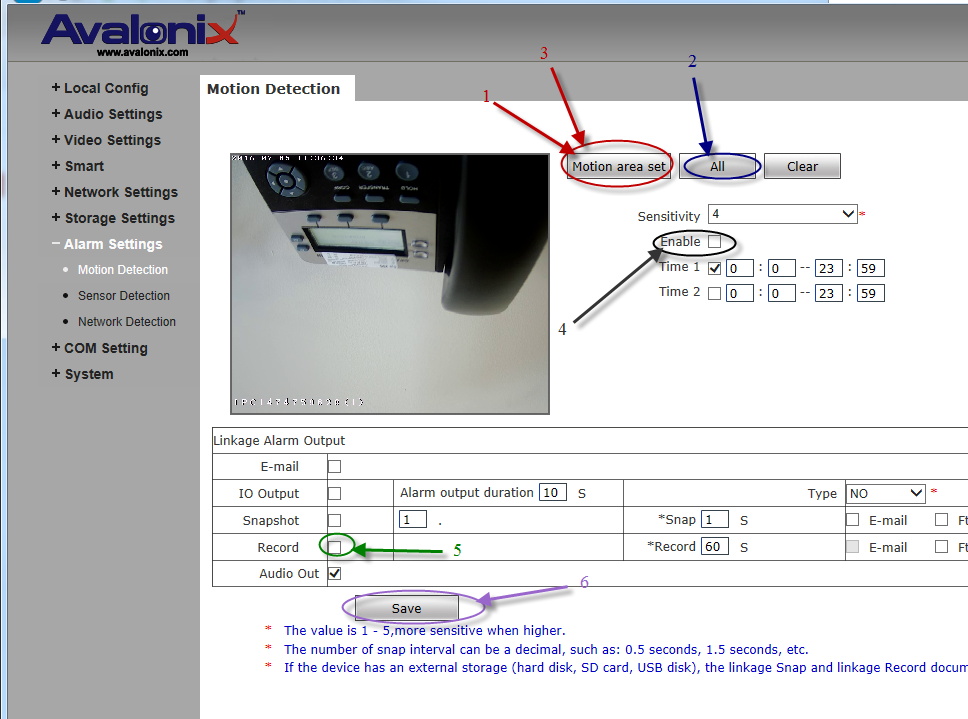 Depending on your given scenario you may want to set motion detection to a stronger or weaker sensitivity. There is no cut and dry setting for sensitivity. It's something that will have to be adjusted to suit your needs over time. The sensitivity on this camera ranges from 1-5, with 5 being most sensitive. We suggest setting the camera on 3 for motion sensitivity.