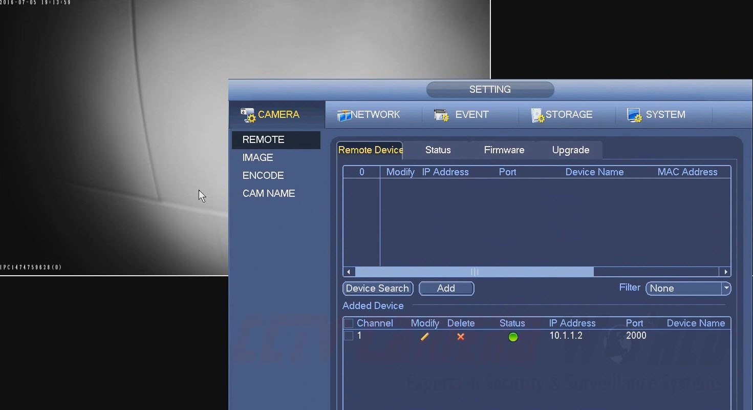 Notice the Subnet and Gateway are exactly the same as what is on the NVR. This is very important. Here is a screen shot of the settings from our camera: