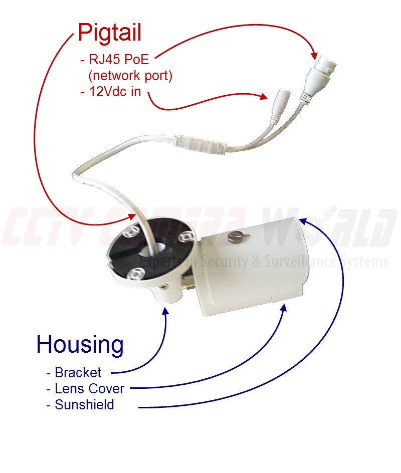 Of course, not all models are the same, but many of our models will have a similar style. Some cameras include additional inputs for RS485 (PTZ Controls), Audio, and Alarms. Most of the cameras you receive from us will be 12V DC. Some of the more power hungry PTZ Cameras will require 24V AC or PoE+ (802.3at).