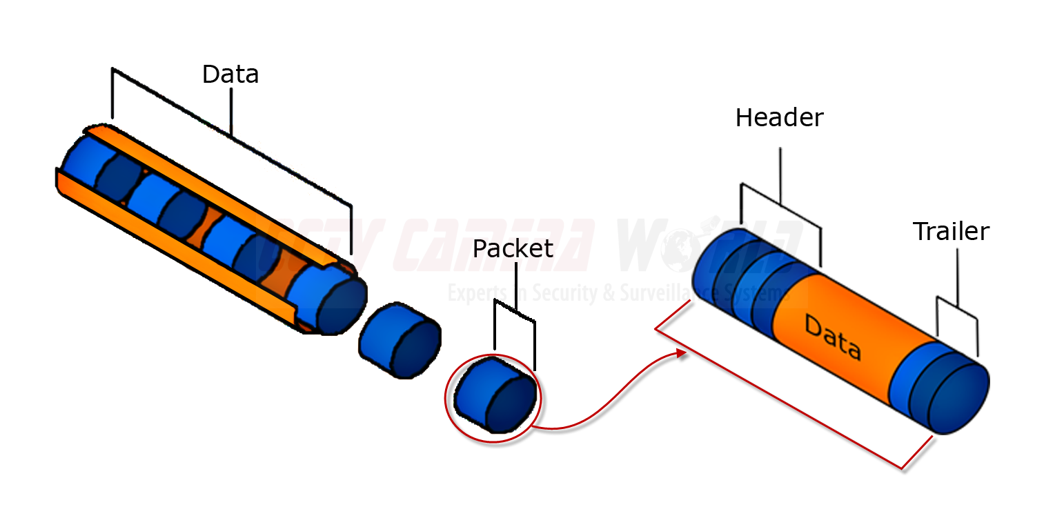 - The IP camera breaks the compressed video into packets with a header and trailer and begins transmitting