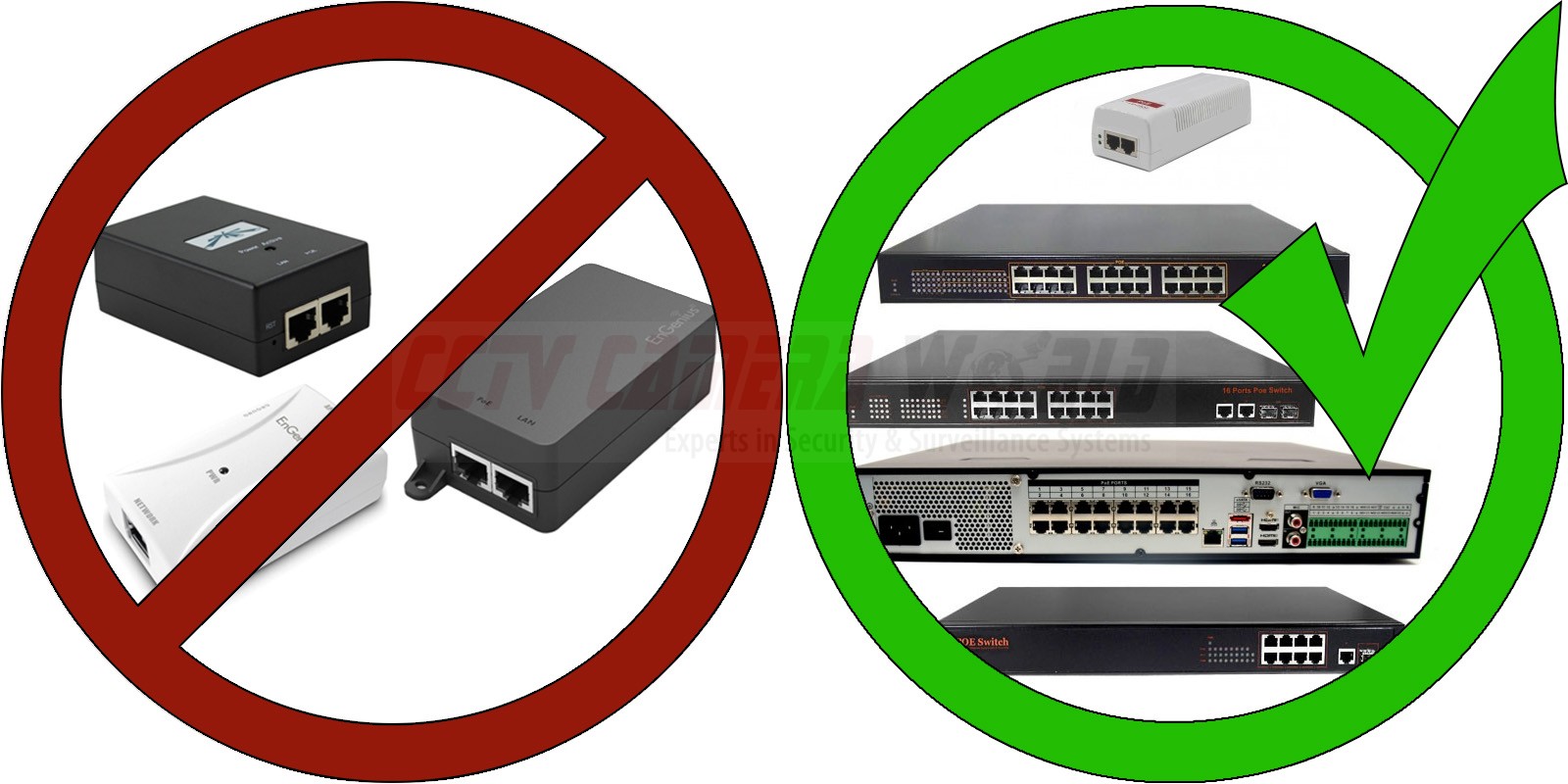 Using other PoE switches could fry your camera. Not using a PoE switch at all will not power your camera. Don't use wireless access point PoE injectors insert pics of what not to use and what to use.