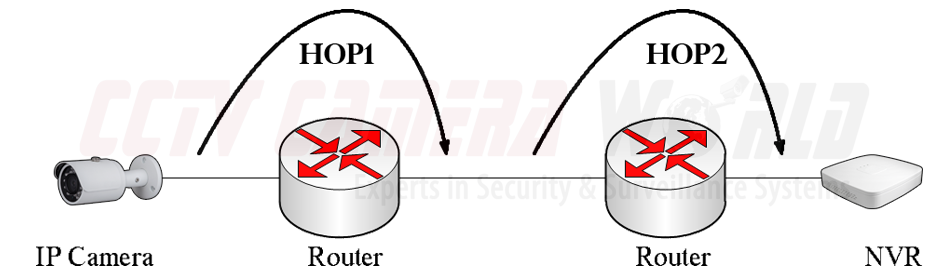 - As the data travels through devices such as PoE switches, Routers, Etc. the header is examined and the packet pointed to the right direction. This is called a hop. Each hop will add latency to the transmission delaying the video feed.
