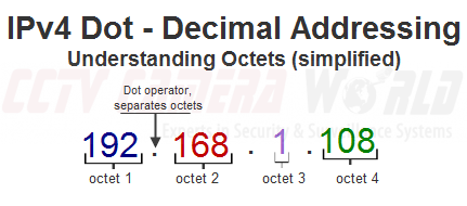 IPv4 addresses are given in dot-decimal notation. Each value is separated by the dot operator and is one byte in size. One byte is 8 bits. It takes 8 bits to make up an octet. IPv4 addresses are comprised of four octets. We really don't need to get into converting decimal to binary, just understand that in most scenarios the only octet that should differ from one device to another on a LAN is the fourth octet, and the values must be unique and between 1-254.