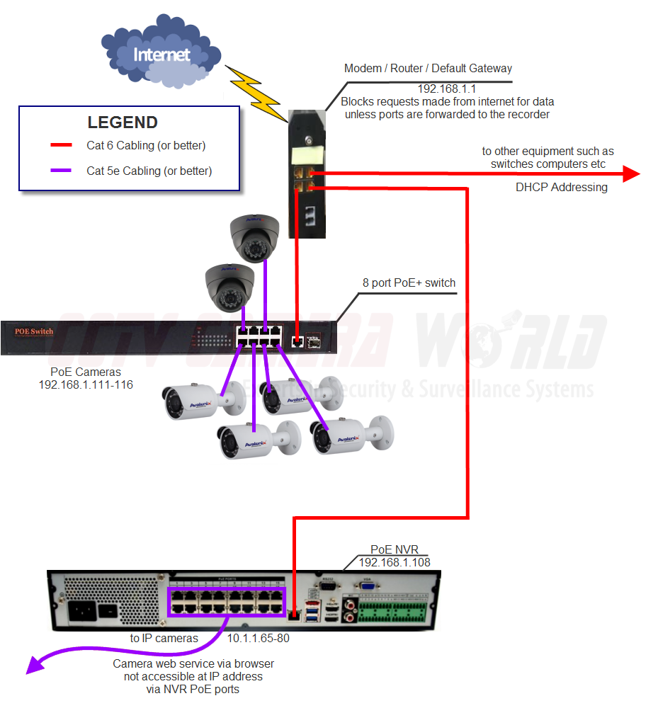 NVR 10/100 PoE Port - Max data transfer rate 100Mbps, only connects cameras, powers cameras, keeps network cameras on a closed system
