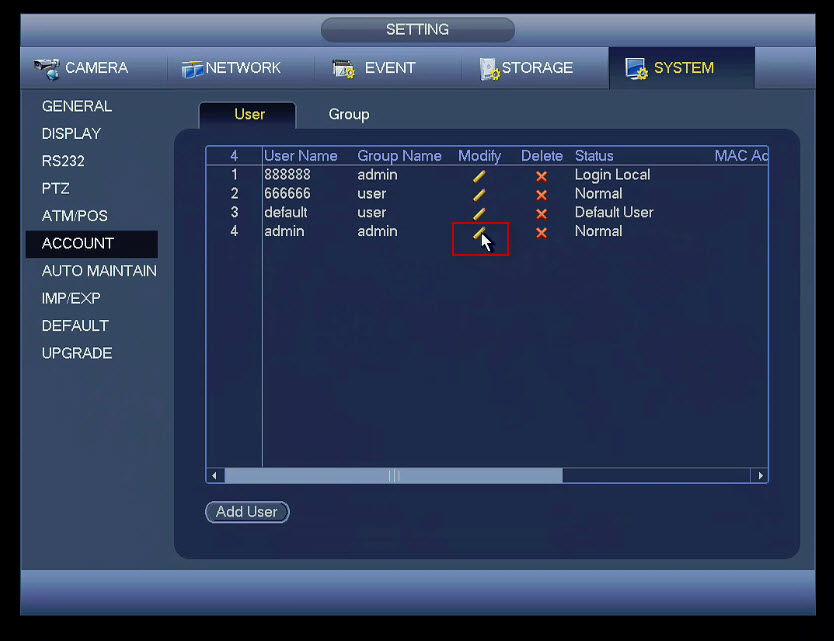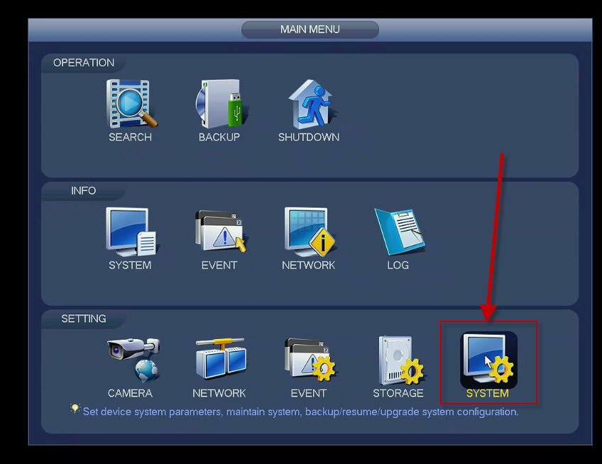 Once you're logged in with the master password navigate to Main Menu > Setting > System > Account